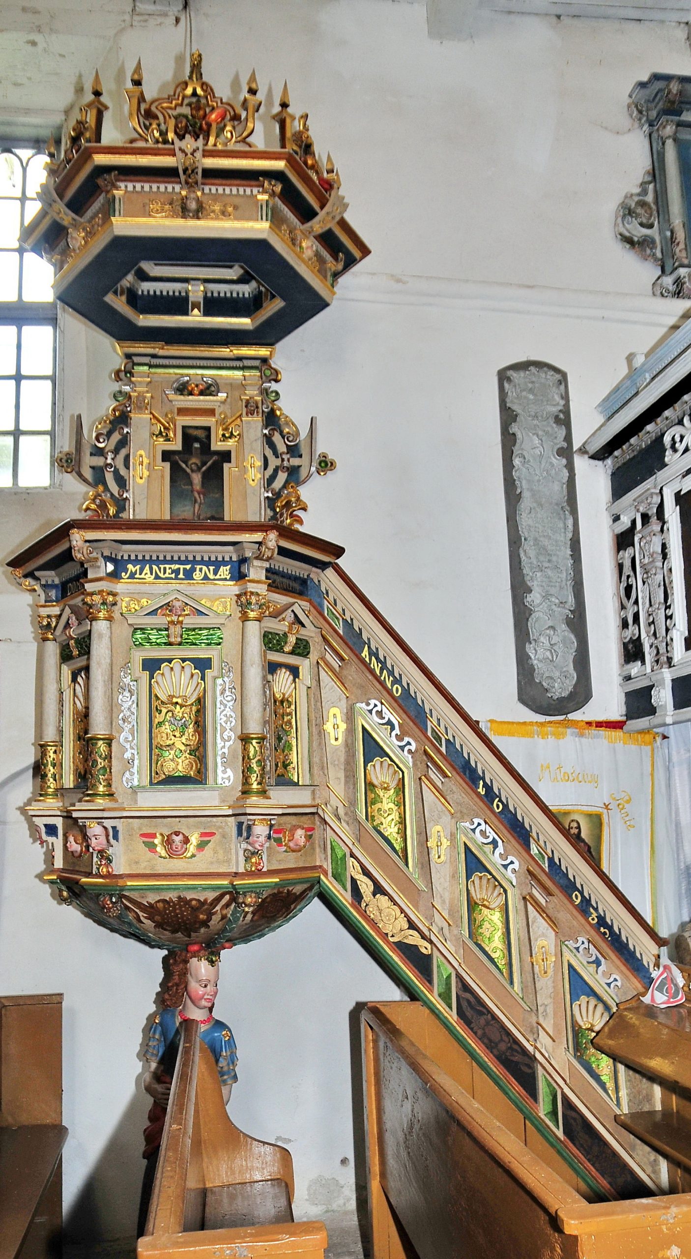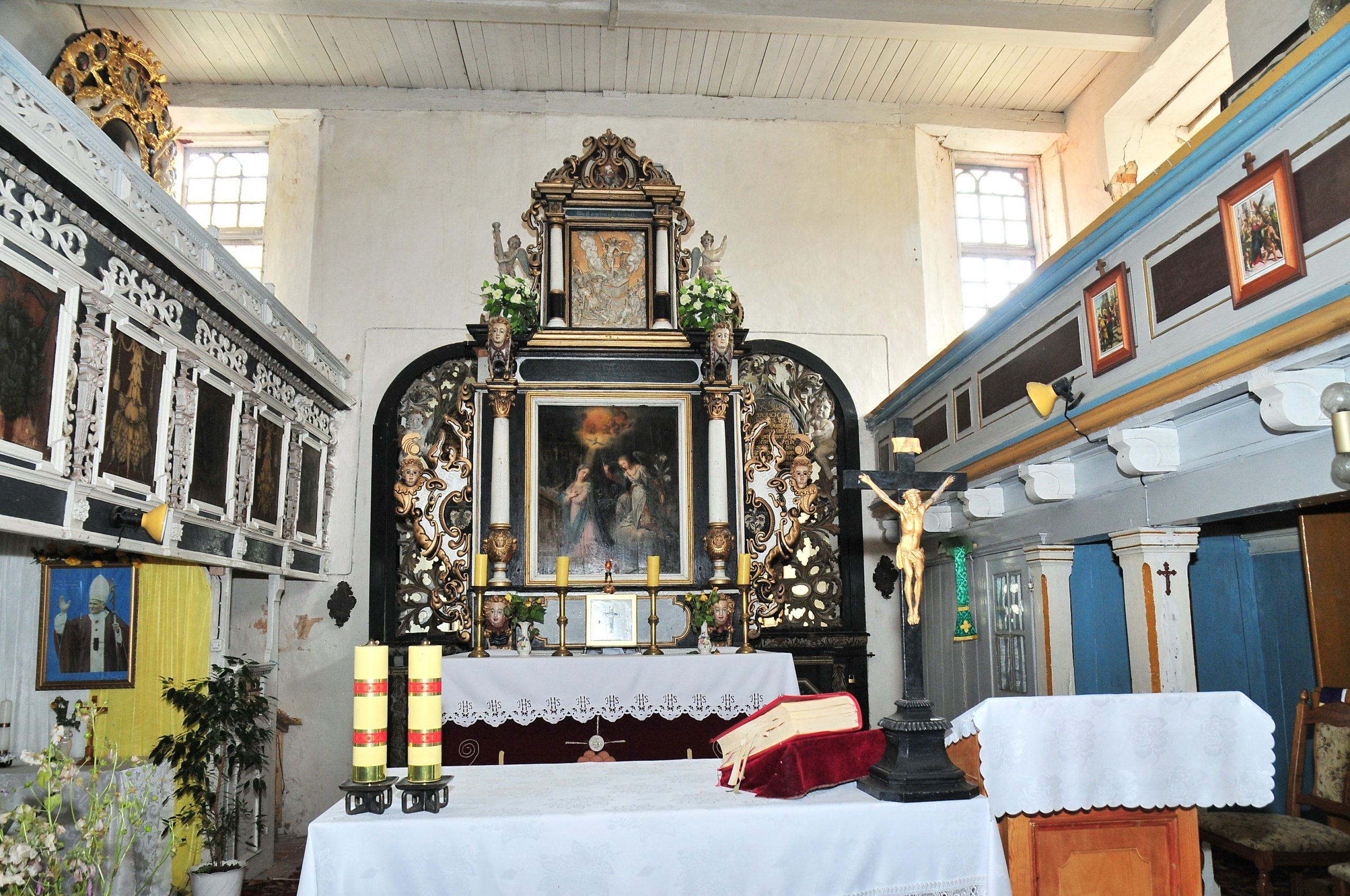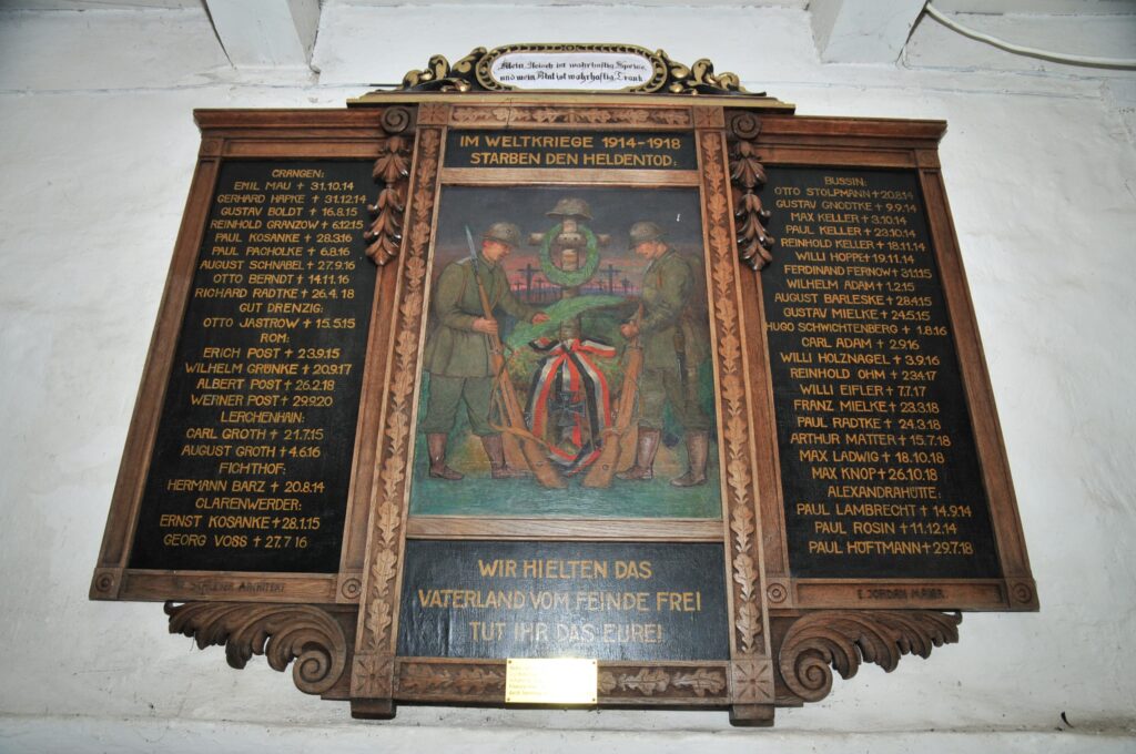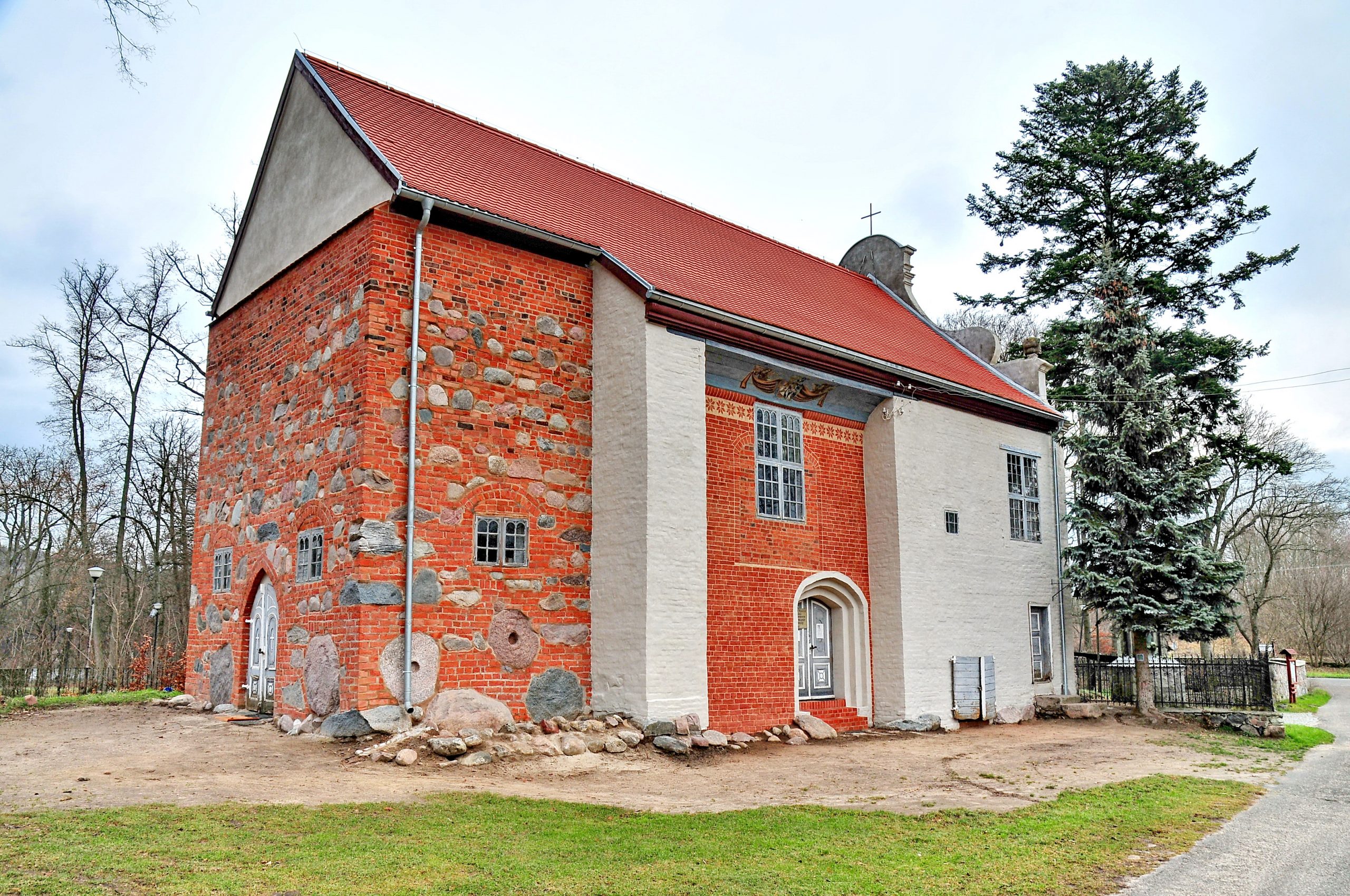 Kościółek w stylu renesansowym posiada we wschodniej części kaplicę, w której znajdują się sarkofagi braci Podewils wyjątkowe na Pomorzu. Pierwowzory takich kościółków budowanych około 1700 roku można znaleźć w Szwecji.